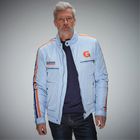 Back on track, the racing jacket with the Gulf logo disc on the chest from Grandprix Originals.